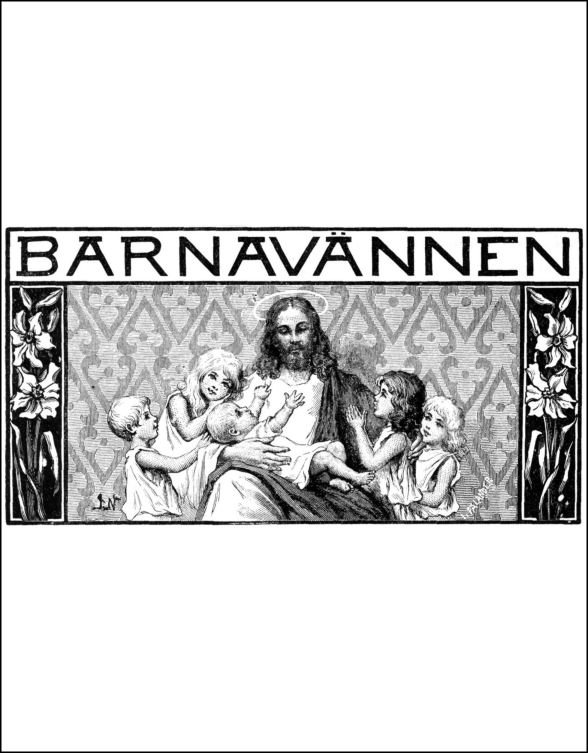 "Var inte rädd, Kristel", skrattade hon sorglöst, "jag faller inte i vattnet. Vet du inte, att vi ha en ängel, som beskyddar oss? Mamma har ju ofta talat om detta. Om natten sitter han bredvid vår säng, så att intet ondt må hända oss, och du minns ju, hur vi sågo en tafla, där han stod framför två barn, som lågo och sofvo under alarna vid dammen, så att de inte skulle falla i vattnet under sömnen. Nu står han nog också bredvid mig och håller mig fast."