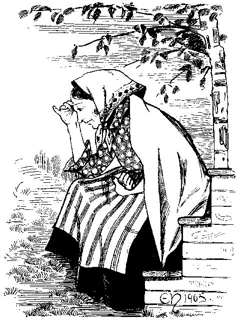 Som du själf ser äro barnen allesammans för små för att i egentlig mening kunna besöka en skola. Vidare äro de allesammans för jämnstora för att kunna vara syskon och allesammans den där kvinnans barn, som sitter där med handarbetet till höger å teckningen.