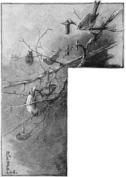 These tiny linnets at work in the delicate birch-boughs.—p. 23.