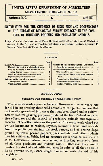 Prepared under the direction of Paul G. Redington, Chief, Bureau of Biological Survey, in the Division of Predatory-Animal and Rodent-Control, Stanley P. Young, Principal Biologist, in Charge