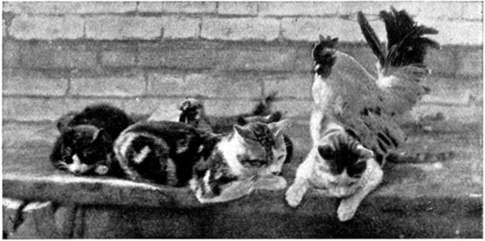 Here we have a group of merry-faced schoolgirls indulging in a jump arm-in-arm together, and the snap-shot gives us a very vivid idea of the almost incredible positions assumed by the limbs and body under such circumstances. The four girls on the left apparently led off, and seem to be quite complacently perched in mid-air, but the trio on the right are decidedly unsteady in their alignment, whilst the young maid on the extreme flank is quite distressed in her uncertainty. The photograph was taken at the château of the Marquise San Carlos, near Paris, by Miss Lilian Noble, of Slissinghurst Grange, Cranbrook.