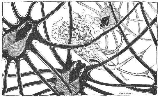 Away and away they swam, swiftly and in a straight line, keeping in the middle water where they were not liable to meet many sea people. They passed a few schools of[236] fishes, where the teachers were explaining to the young ones how to swim properly, and to conduct themselves in a dignified manner; but Trot did not care to stop and watch the exercises.