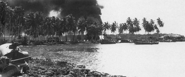 The landing and occupation of Arundel Island, on 27 August, further tightened the noose around Kolombangara. Army troops were supported by Captain Blake and tanks from the 9th, 10th, and 11th Defense Battalions. Major General Collins, commanding the 25th Infantry Division carrying out this assignment, commended the Marines “for the whole-hearted cooperation and assistance rendered this division” during the operations against the Japanese in the Arundel Island campaign. They performed all assigned tasks “in a splendid manner in support of the 27th Infantry, in its action....”