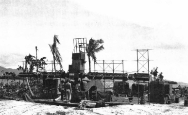 Other defense battalion Marines skillfully employed their 90mm gun batteries and their radar-operated fire control systems to keep enemy aircraft high and away from their ground targets. Gun positions were built above the water table as seen here.