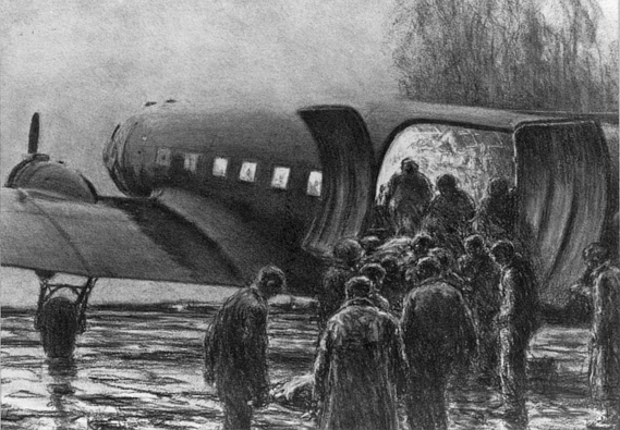 The R4D Skytrains of MAG-25 delivered 100,000 pounds of food, water, ammunition, and medicine that was the Northern Landing Group’s only source of supply at times. This support prompted one Marine raider to ask that the air drop containers be combat, or spread, loaded as on one occasion they recovered 19 of a 20-container load drop and “only later discovered the missing drop contained medicinal brandy.” Air drops of supplies went to the other ground forces as well, throughout a campaign fought in difficult, trackless, terrain.