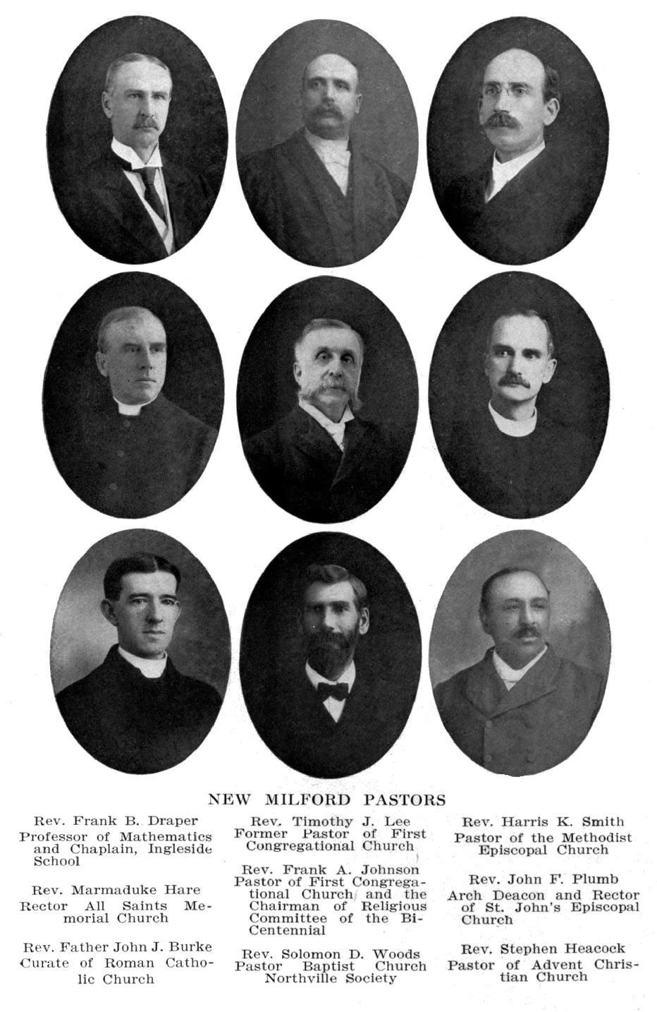 | Preaching appropriate to the occasion. Sermon of Rev. Frank A. Johnson in the First Congregational Church. Hymn by Charlotte Baldwin Bennett. Sermon by Rev. Samuel Hart, D. D., in St. John’s Episcopal Church. Sermon by Rev. S. D. Woods in the Baptist Church. Sermon by Rev. H. K. Smith in the Methodist Episcopal Church. Sermon by Rev. Orville Van Keuren in the Gaylordsville Methodist Episcopal Church. Sermon by Rev. E. Z. Ellis in the Advent Christian Church. Sermon by Father Ryan in the Catholic Church. The Union meeting. Address by Rev. Frederick A. Wright of New York. The evening services. The services at All Saints’ Memorial Church. Sermon by Rev. Charles J. Ryder, D. D., of New York in the First Congregational Church. Sermon by Rev. George S. Bennitt, D. D., in St. John’s Church. | |