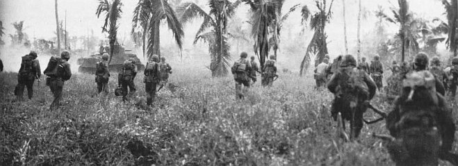 Troops on the APAs (attack transports) went over the rail and down cargo nets to which they—weighed down with 40-pound packs as well as weapons—held on for dear life, and into LCVPs (Landing Craft, Vehicle and Personnel). These troops would transfer from the landing craft to LVTs at the reef’s edge, if all went as planned.