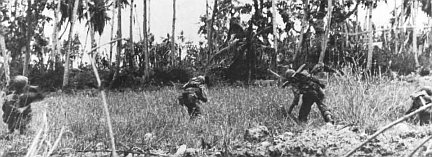 The 3d Battalion, 9th Marines, under Lieutenant Colonel Walter Asmuth, Jr., caught intense fire from the front and right flank near Asan Point, and he had to call on tanks for assistance, but one company got to9 the ridge ahead quite rapidly and threw the defenders at Asan Point off balance, making the regiment’s advance easier. (It would also be up to the 9th Marines to take Cabras, a little island offshore and hard against Apra Harbor. This would be accomplished with a separate amphibious landing.) With its 2d and 3d Battalions in the lead, the 9th Marines drove through its initial objectives quickly and had to slacken its advance in order not to thin out the division’s lines.