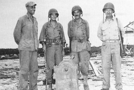 While the embattled peninsula still swarmed with patrols, Admiral Spruance; Generals Smith, Geiger, Larsen (the future island commander), and Shepherd; Colonels Shapley and Schneider, and others who could be spared, arrived for a ceremonial flag raising and heartfelt tribute to an old barracks and those Marines who had made it home. General Shepherd called it hallowed ground and told the distinguished assemblage, which included a hastily cleaned-up honor guard of brigade troops: “you have avenged the loss of our comrades who were overcome by a numerically superior force three days after Pearl Harbor. Under our flag this island again stands ready to fulfill its destiny as an American fortress in the Pacific.”