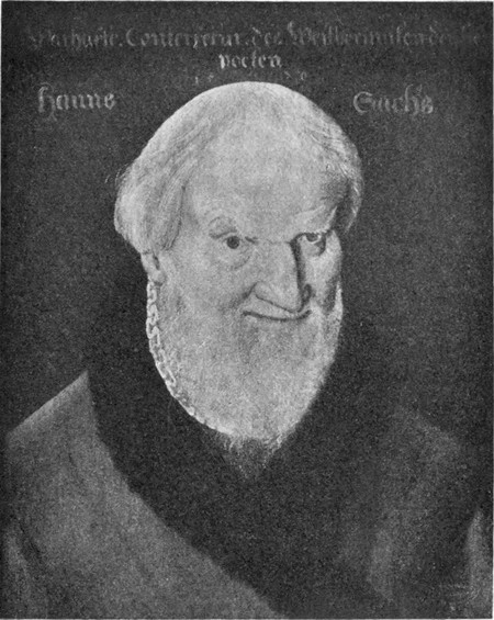 Am bekanntesten sind von Herneisen jedoch die verschiedenen Hans Sachs-Porträts geworden. Das eine derselben, von dem wir vorstehend eine[S. 8] Nachbildung, und zwar zum erstenmale geben, befindet sich in der bekannten Sammlung Weber in Hamburg, deren Besitzer, Herr Konsul Weber, uns in liebenswürdiger Weise eine vortreffliche Photographie zur Verfügung stellte. Es ist ein Brustbild des einundachtzigjährigen Hans Sachs ohne Hände, nach rechts gewandt, auf rotem Grunde[12]. Der greise Dichter mit graublauen Augen, spärlichem, weißem Haupthaar und Vollbart, und weißen Augenbrauen, trägt eine graue, mit schwarzem Pelz besetzte Schaube über rotem Rock mit weißer kurzer Halskrause. Die Bezeichnung oben in der Mitte befindet sich innerhalb der Jahrzahl 1576. Das Bild ist auf Tannenholz gemalt, 49,5 cm. hoch und 38 cm. breit. In die Sammlung Weber gelangte es aus der Auktion Arnstein in Berlin 1890, nachdem es sich um die Mitte des Jahrhunderts im Besitz des Ministers von Nagler befunden hatte. Es ist das Vorbild der meisten uns bekannten Hans Sachsbildnisse gewesen. Ohne die künstlerische Bedeutung des Bildes zu überschätzen, darf man wohl behaupten, daß es mit einfachen Mitteln eine starke, naturalistische Wirkung erreicht. Die Greisenhaftigkeit des Dargestellten ist mit außerordentlicher Wahrheit wiedergegeben. Der Einzeldruck mit dem oben des öfteren angezogenen Gedicht »Ein gesprech, darin der dichter dem gefeierten abt zu allerspach etc.«, enthält die Radierung (Stich) des Jost Aman (?)[13] und an den 1568 gemachten Spruch anschließend, beziehungsweise ihn verwendend, die Danksagung des Herneisen für das geschenkte Valete für den Abt, sowie die genauen Daten über das Bild in den unten stehenden Versen. Daß sie von Hans Sachs selbst kurz vor seinem Tode noch verfaßt, ist wohl nicht anzunehmen, vielleicht hat einer der Freunde aus der Nürnberger Singschule dem Maler ausgeholfen, wenn dieser nicht gar selbst in diesem Fall den etwas flügellahmen Pegasus bestiegen hat. Der Maler schreibt: