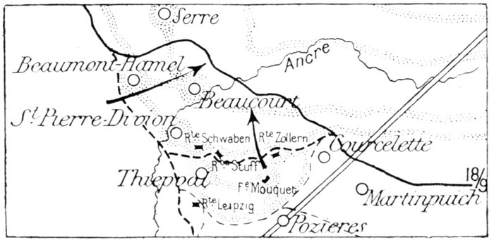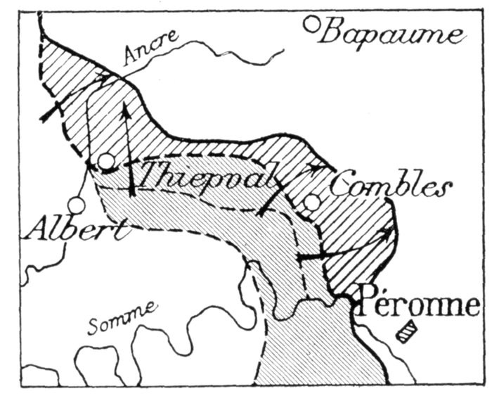 In spite of the terrible strain France was undergoing at Verdun, the number of troops left before that fortress, under the command of General Pétain, who had thoroughly consolidated the defences, was reduced to the strictest minimum, and the 6th and 10th Armies, under the command of General Fayolle and General Micheler, respectively, were thus able to collaborate with the British in the Somme offensive.