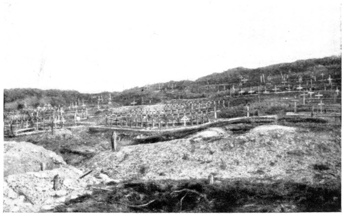 Before the battle, the attacking troops assemble first in the shelters, then in the assembling places and parallels made during the previous night. The battalion, company and section commanders survey the ground of attack with field-glasses.