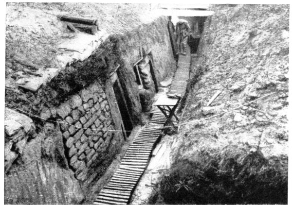 Preparing for a modern battle is a Herculean task. At a sufficient distance behind the front line immense ammunition and revictualling depôts are established. Miles of railway, both narrow and normal gauge, have to be put down, to bring up supplies to the trenches. Existing roads have to be improved, and new ones made. In the Somme, long embankments had to be built across the marshy valleys, as well as innumerable shelters for the combatants, dressing-stations, and sheds for storing the ammunition, food, water, engineering supplies, etc. Miles of deep communicating trenches, trenches for the telephone wires, assembly trenches, parallels and observation-posts had to be made. The local quarries were worked, and wells bored.