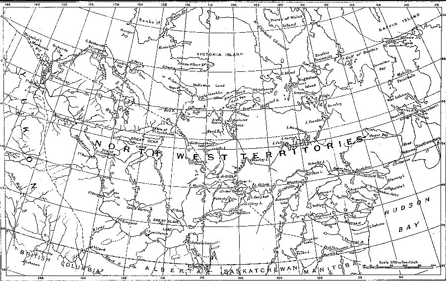 This general definition of area brings within the scope of this volume the whole of that portion of the old provisional district of Keewatin recently divided by act of parliament between the provinces of Ontario and Manitoba, those portions of the provinces of Saskatchewan and Alberta north of the unsettled and unsurveyed territory, the basin of Mackenzie river, and that immense country north of the new provincial lines extending from Mackenzie basin to Hudson bay, which has apparently, undeservedly, come to be known as “Barren Lands” or “Barren Grounds.”