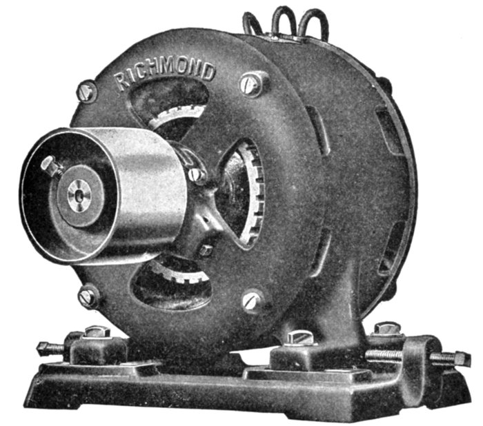 Any single or polyphase alternator will operate as a synchronous motor when supplied with current at the same pressure and frequency as it produces as a generator, the essential condition, in the case of a single phase machine, being that it be speeded up to so called synchronism before being put in the circuit.