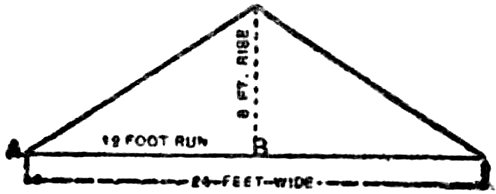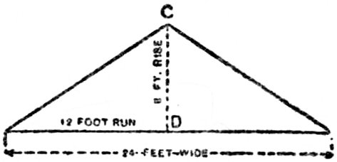 “The pitch is the proportion that the rise bears to the whole width of the building. The illustration, Fig. 8, shows one-third pitch; the rise of 8 foot being one-third of the width of the building.