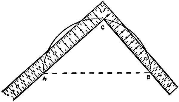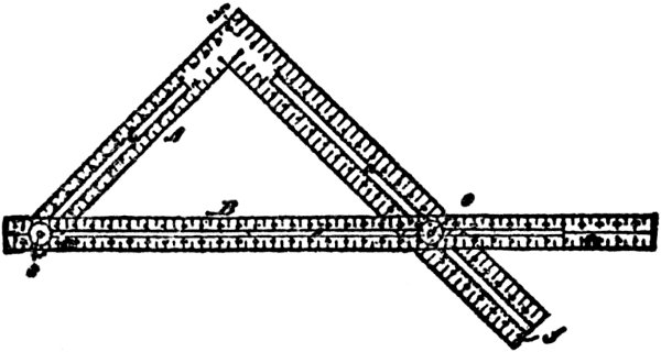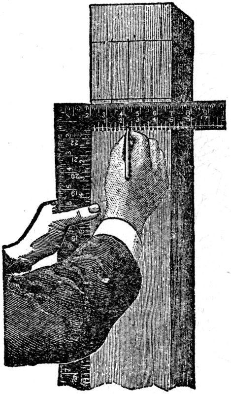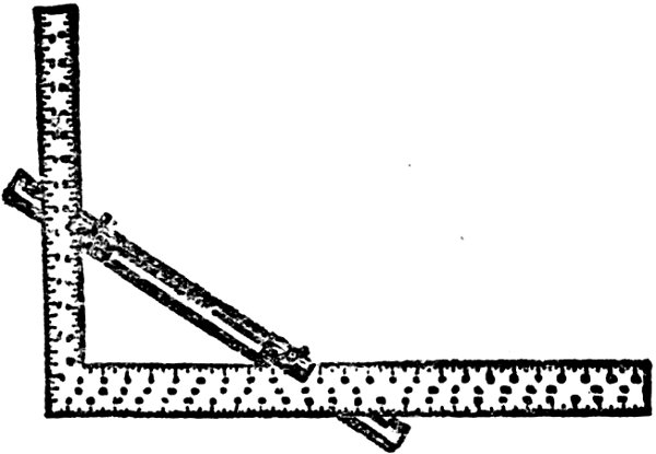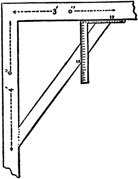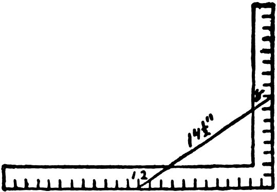 In the foregoing sketch I have given a few hints as to the kind of square to purchase when it is necessary to buy; in many cases, however, this book will find its way into the hands of mechanics and others, who will have old and favorite squares in their chests or workshops, and who will not care to dispose of a “well-tried friend” for the purpose of filling its place with another, simply because I have recommended it. To these workmen I would say that I do not advise a change, provided the old square is true, and the inches and sub-divisions are properly and accurately defined. I wish it distinctly understood that old squares, if true, and marked with inches and sub-divisions of inches, will perform nearly every solution presented in this book.