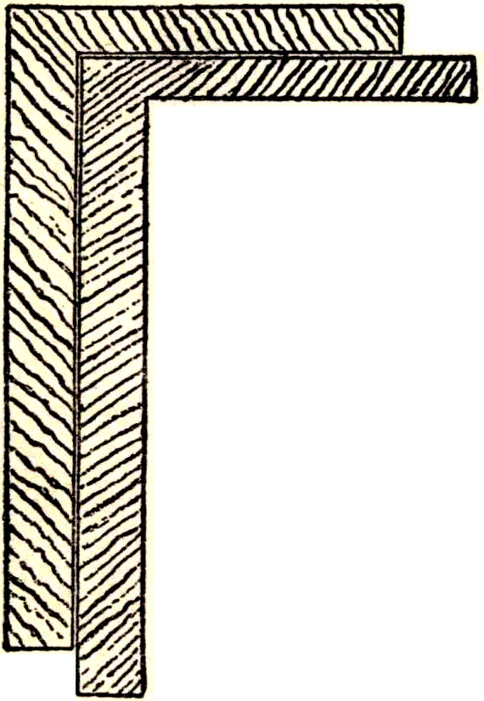 It will be seen that these squares adapt themselves to other work as well as to framing, a quality very few of the combination squares possess, and while combination squares have their special uses and should be in the tool chest of 20 every expert workman, the square pure and simple, like this of Nicholls or similar ones, should never be absent from the “kit” of the ordinary workman, for with it, if he thoroughly understands it, he can accomplish all that is possible even with a combination square. If he is not “posted” the workman should procure some one or more of the many devices or helps for getting bevels, angles, lengths and cuts, for rafters, braces, hips and jacks as advertised by Riesmann, Woods, and others.