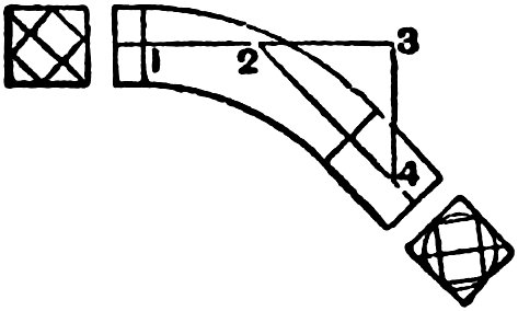 In practice, a parallel mold is generally used, and the wreath piece is cut out; both thickness of plank and width of molding being equal to the diameter of a circle that will contain a section of finished rail.