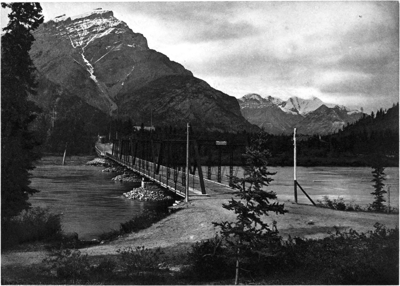 The small and scattered village of Banff occupies a flat plain near the Bow River. This large stream, the south branch of the Saskatchewan, one of the greatest rivers of North America, is at this point not only deep and swift but fully one hundred yards in width. A fine iron bridge spans the river and leads to the various hotels all of which are south of the village. The permanent population numbers some half thousand, while the various stores, dwellings, and churches have a general air of neatness and by their new appearance suggest the fact that the history of Banff extends back only one decade.