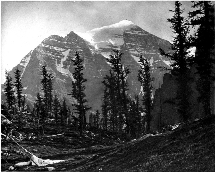 The last visit I made to Lake Louise was toward the middle of October, 1895. A very snowy, disagreeable September had been followed by a long period of milder weather with much bright sunshine. The new snow, which had been quite deep near the lake, had altogether disappeared except high up on the mountain side. It was the true Indian summer, a season with a certain mellow charm peculiar to it alone, characterized by clear 30 sunny weather, a calm atmosphere, a low, riding sun, and short days. Most of the flowers were withered. The deciduous bushes, lately brilliant from frost, were rapidly losing their foliage, and the larches were decked in pale yellow, far up near the tree line. However, the greater part of the vegetation is evergreen, and the spruces, balsams, and pines, the heaths, ericaceous plants, and the mosses contrive to set winter at nought by wearing the garb of a perpetual summer in a region where snow covers the ground three fourths of the year.