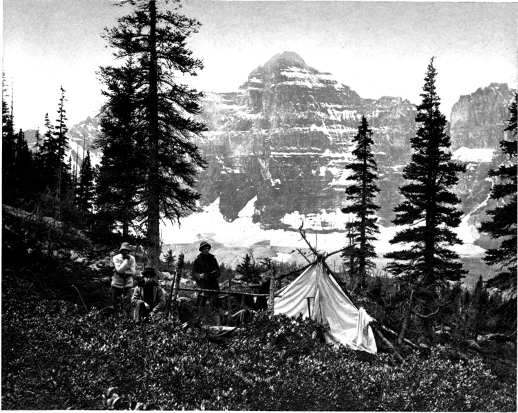 The effect on the health and strength is, of course, one of the chief advantages of camp life. But there is another beneficial result brought about by this manner of life that is more important, though less often taken into consideration. This is the effect that camp life has on the character. In the first place, one learns the value of perseverance, for without this quality nothing can be accomplished in such a region as the Canadian Rockies. The explorer will realize this when he comes to a long 274 stretch of burnt timber, where his horses flounder in a maze of prostrate trees; and the climber will feel the need of continued resolution when, after a long and arduous climb to an apparent summit, he reaches it only to find the slope extending indefinitely upwards.