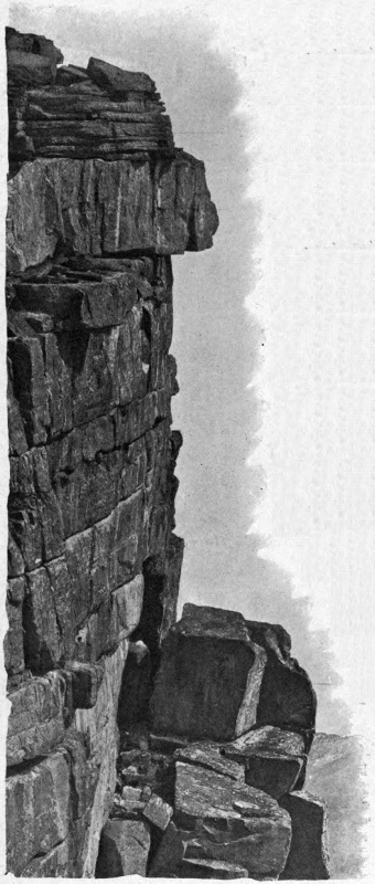 Imagine a precipice sixteen times higher than Niagara, nearly perpendicular, and built out of hard flinty sandstone. At the top of this giant wall, picture a great glacier with blue ice three hundred feet thick, crevassed and rent into a thousand yawning caverns, and crowding downwards, ever threatening to launch masses of ice large as great buildings into the valley below. Such avalanches are among the most sublime and thrilling spectacles that nature affords. The eye alone is incapable of appreciating the vast scale of them. The long period of silence at first and the thunder of the falling ice reverberated among the mountain-walls produce a better impression of the distance and magnitude.