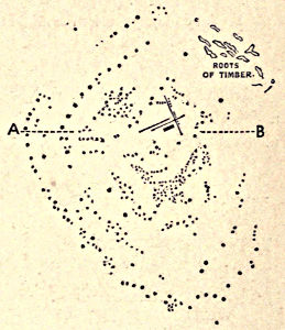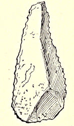 [245] The “finds” here were unimportant, they consisted of a polishing-stone; a dart or arrow-head formed of the carboniferous sandstone of the district; a few sea-shells; some charred bones, principally those of the cow, sheep, pig, and goose—the latter very numerous; hazel nutshells; pieces of chert, off some of which chips seemed to have been struck; small round pebbles of white quartz.—Proceedings R. I. A., vol. x., pp. 31, 33.—G. H. Kinahan.