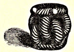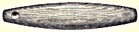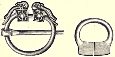 [204] The following is a list of antiquities of minor interest:—A crucible of the usual crannog kind, in a perfect state. A brooch, or fibula, composed of iron, bronze, and a white metal—perhaps silver; it had evidently been prepared for enamel—the pin was eaten away by corrosion. An iron knife, with bronze mounting to the handle, which was pierced for rivets. An ordinary crannog knife-blade, like those found in Anglo-Saxon interments. Portion of a small iron shoe for horse or ass. Piece of an iron band. A thin bronze fillet that might have been used for securing the staves of a small wooden vessel, or intended for a hair-band: a lady who tried it on, pronounced it to be decidedly an article of feminine adornment—let that decide the point! A small article of late bronze, apparently belonging to horse trappings. A whetstone. A worked stone or disc. A lump of iron dross or “slag.” The under stone of a quern. From time to time no fewer than three single-piece canoes have been discovered beneath the waters of the lough; one was for years used as a trough for cattle, and afterwards cut up for firewood; the others were utilized in the roofs of out-offices.—Journal Royal Hist. and Arch. Asso. of Ireland, vol. i. (4th Series), pp. 360, 371.