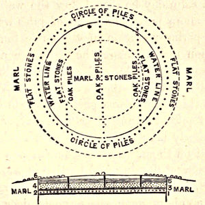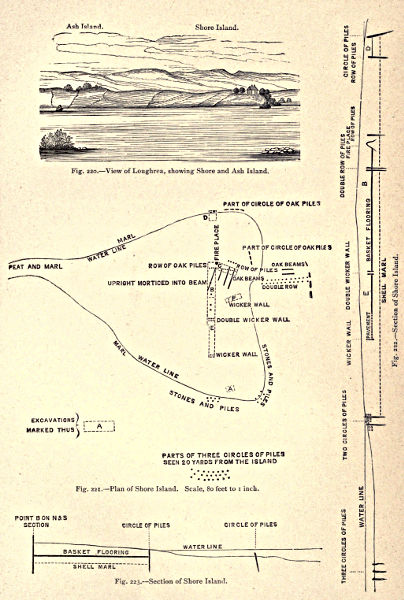 This Publication may, perhaps, help to diffuse more generally the knowledge already possessed, so that when fresh discoveries are made in any new locality increased care may be devoted to the exploration; for every artificial island is not necessarily of remote antiquity, and the most careful examination is essential before arriving at a decision respecting the probable period of the primary construction of a crannog. It would be fortunate indeed should these pages excite sufficient attention to prove, even remotely, the cause of having the various relics indicative of the social economy and industries of the inhabitants of our ancient “water-towns” arranged systematically in the new Museum of the Science and Art Department, now in course of construction in Dublin. The facility thus afforded of studying these antiquities—some of them safely protected during untold centuries by their covering of peat and water—could not fail to lead to a clearer comprehension of the real condition of ancient culture and civilization in Erin.