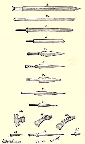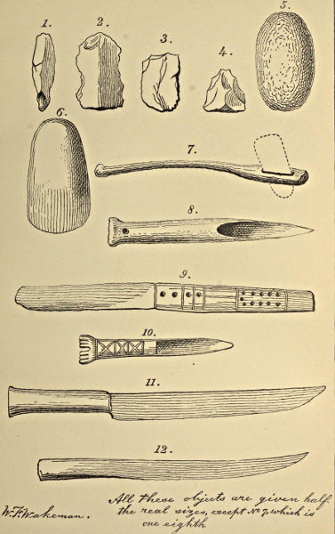 | STONE, BONE, BRONZE, AND IRON IMPLEMENTS, &c. | ||