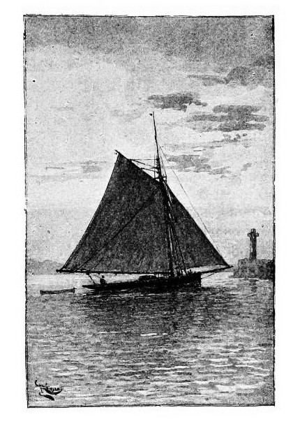 There was no swell, and I directed our course between the walls of the town and the buoy called Cinq-cents francs (Twenty pounds sterling) that marks the deeper channel; then, catching the breeze astern, I made sail to double the headland.