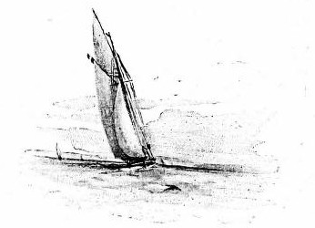 A sudden gust heels us over, so that the water washes the deck, and I give orders for the gaff topsail to be lowered, the cutter being no longer able to carry it without endangering the safety of the mast.
