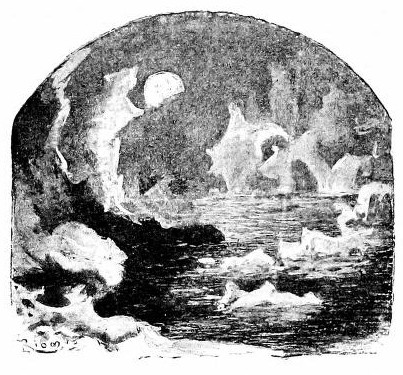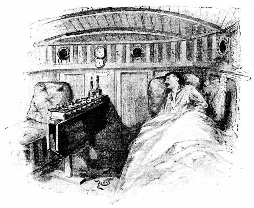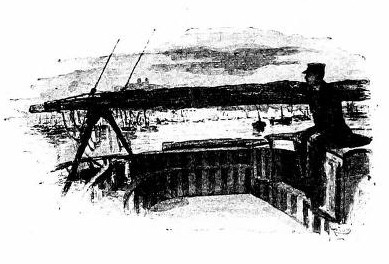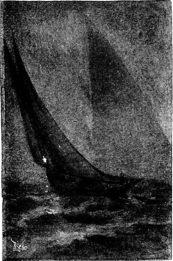 I went down into the cabin, lighted up by a couple of candles hanging and balanced like compasses, at the foot of the sofas which at night were used as beds, I donned the leathern sailor's jacket, put on a warm cap, and returned on deck. Already the hawsers had been cast off, and the two men hauling in the cable, had brought the anchor apeak. Then they hoisted the big sail, which went up slowly to the monotonous groan of blocks and rigging. It rose wide and wan in the darkness of the night, quivering in the breath of the wind, hiding from us both sky and stars.