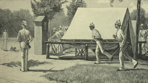 And the awful person was Jennings, who, shunned like a pariah by the corps, was again awaiting trial by court-martial as soon as Frazier should be able to testify. For days it looked as though Benny never could appear before an earthly court, and that this case, like the other, must go by default. So long as it appeared that the fever would prove fatal, Jennings kept up his air of bravado and confidence. The evidence of Graham and Ames, the first to reach the scene of the assault, would be sufficient to convict him of that offence, but even they could prove nothing beyond a personal row, said he. It was fully understood, however, that back of all this trouble was the old case of Benny's plebe camp, and that the assault on Graham when a [260]sentry, the stealing of Graham's rifle, and the desertion of Musician Doyle were all matters in which Jennings was a prime mover; and though now "outlawed by the statute"—more than two years having passed since the occurrence of these offences, during which time the alleged offender had in no wise sought to secrete himself from military justice, and therefore a case no longer triable by court-martial—there is no two-year limit to the contempt of the corps of cadets. They could send him to Coventry at any time, and even though he were graduated it might be impossible to obtain a commission.