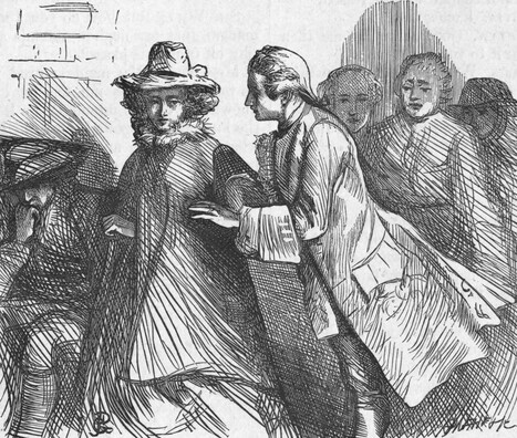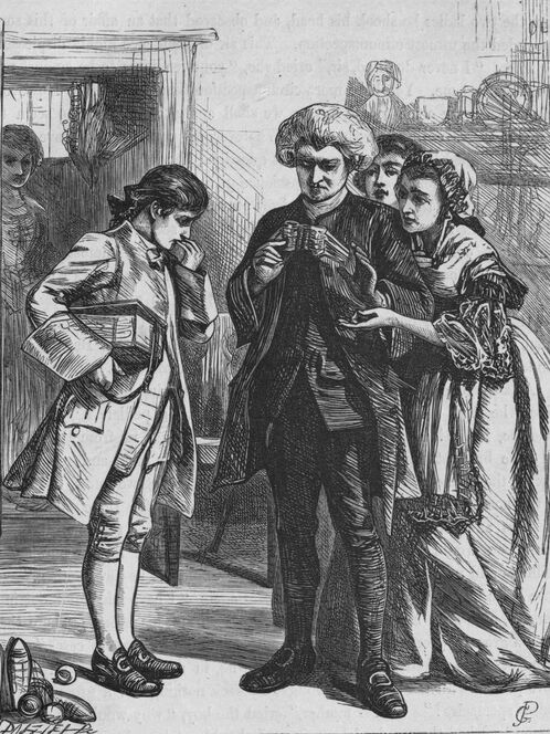"Distressed, but not discouraged at this treatment, he was at last resolved to find that assistance from love, which he could not have from friendship. Miss Jenny Dismal had a fortune in her own hands, and she had already made all the advances that her sex's modesty would permit. He made his proposal, therefore, with confidence, but soon perceived, 'No bankrupt ever found the fair one kind.' Miss Jenny and Master Billy Galoon were lately fallen deeply in love with each other, and the whole neighbourhood thought it would soon be a match.