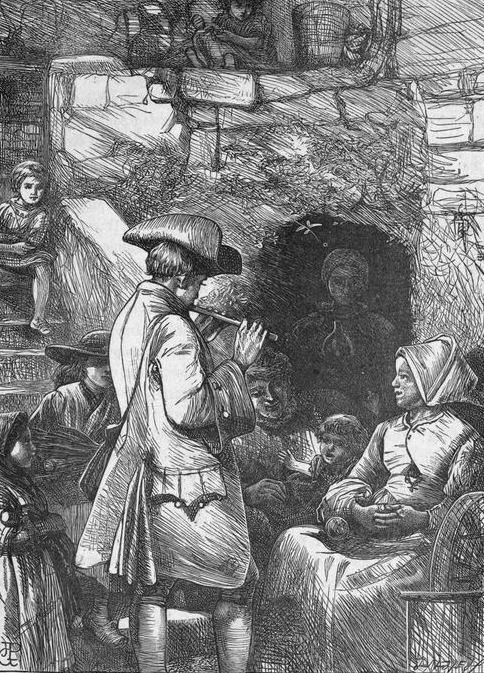 By various means he made a shift to live. At one time he pounded drugs for an apothecary near London Bridge; at another, he attempted to practise physic amongst the poorest of the poor. Now we find him correcting press proofs for a printer; and now he is settled for a time as usher in Dr. Milner's boys' school at Peckham. We have a picture of him here, drawn by Miss Milner, the principal's daughter. He is described as exceedingly good-natured, always ready to amuse the boys with his flute, giving away his money, or spending it in tarts and sweetmeats for the boys as soon as he received it, and generally recommending himself by his amiability and kindliness of heart. But Goldsmith himself considered this servitude at the Peckham Academy as the most dreary period of his life. The position of an usher was at that time, if possible, worse than it is now; and the mortifications he experienced at Peckham helped to throw a shadow over his later life.