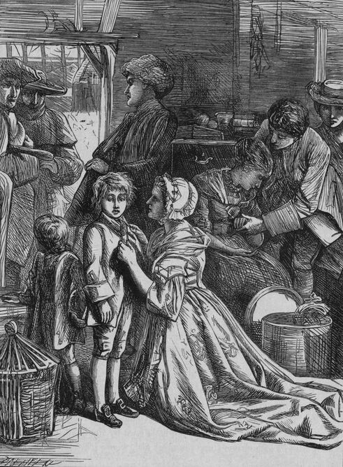As my eldest son was bred a scholar, I determined to send him to town, where his abilities might contribute to our support and his own. The separation of friends and families is, perhaps, one of the most distressful circumstances attendant on penury. The day soon arrived on which we were to disperse for the first time. My son, after taking leave of his mother and the rest, who mingled their tears with their kisses, came to ask a blessing from me. This I gave him from my heart, and which, added to five guineas, was all the patrimony I had now to bestow. "You are going, my boy," cried I, "to London on foot, in the manner Hooker, your great ancestor, travelled there before you. Take from me the same horse that was given him by the good Bishop Jewel, this staff; and take this book too—it will be your comfort on the way; these two lines in it are worth a million—I have been young, and now am old; yet never saw I the righteous man forsaken, nor his seed begging their bread. Let this be your consolation as you travel on. Go, my boy; whatever be thy fortune, let me see thee once a year; still keep a good heart, and farewell." As he was possessed of integrity and honour, I was under no apprehensions from throwing him naked into the amphitheatre of life; for I knew he would act a good part, whether vanquished or victorious.