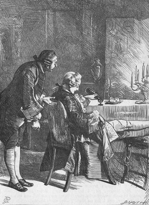 "Not quite disconcerted by this refusal, our adventurer was resolved to apply to another, whom he knew to be the very best friend he had in the world. The gentleman whom he now addressed received his proposal with all the affability that could be expected from generous friendship. 'Let me see,—you want a hundred guineas; and, pray, dear Jack, would not fifty answer?'—'If you have but fifty to spare, sir, I must be contented.'—'Fifty to spare! I do not say that, for I believe I have but twenty about me.'—'Then I must borrow the other thirty from some other friend.'—'And pray,' replied the friend, 'would it not be the best way to borrow the whole money from that other friend, and then one note will serve for all, you know? Lord, Mr. Spindle, make no ceremony with me at any time; you know I'm your friend, when you choose a bit of dinner, or so. You, Tom, see the gentleman down. You won't forget to dine with us now and then? Your very humble servant.'