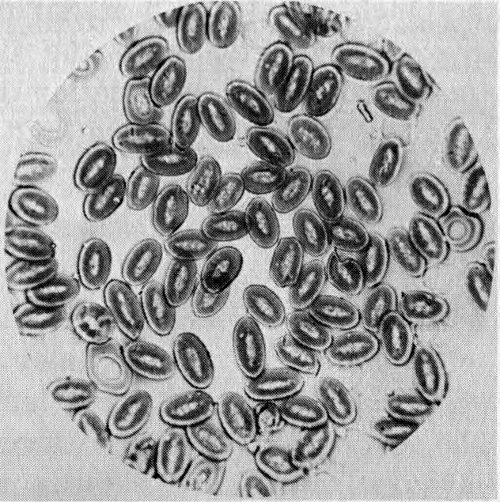 Figure 1 One of the earliest photographs of cells taken with a microscope. This photomicrograph shows cells in the blood of a pigeon. It was made by J. J. Woodward, U. S. Army surgeon, in 1871. Woodward had made the first cell micrograph (a graphic reproduction of the image of an object formed by a microscope) in 1866.