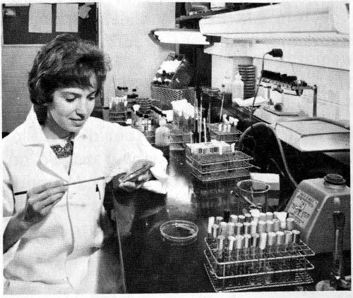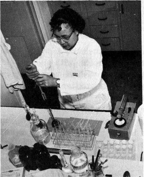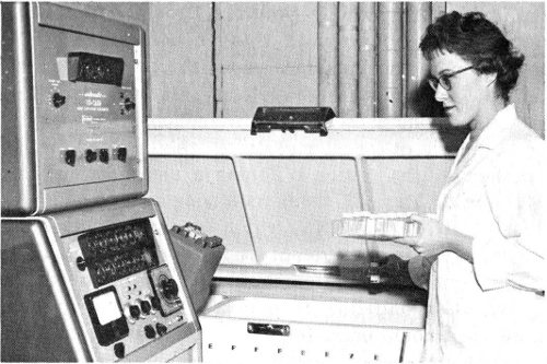 Figure 9 A laboratory technologist preparing dissolved biological materials as part of a study of the uptake of radioactive substances in living organisms. Note the radiation-detection instrument at right.