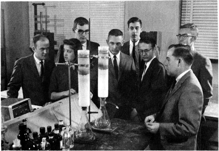 Figure 23 Students visiting Argonne National Laboratory listen to a scientist explain the column chromatography process, in which mixtures of nucleotides are separated as they pass down a column of chemicals.