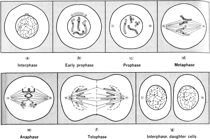 Figure 6 Stages of the mitotic cycle in a hypothetical cell with four chromosomes.