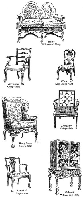 For the convenience of users of this bulletin, the subject matter has been arranged in the form of units, each of which is intended to be made the basis for a minimum of 2 hours discussion and study. With each unit is a set of stimulating questions and a brief reading list. A more detailed reading list will be found in the appendix. This bulletin, hence, may serve as a short unit course for those who can spare time for no more than 8 or 10 group meetings. Certain groups may prefer not to follow the units in the order suggested and to concentrate for a longer time on such important topics as period furniture, interior decoration, the furniture woods, or various room arrangements. For these, selected material may be used for[Pg vi] short unit courses in specialized fields. For instance, the last five units, taken together, may serve many salesmen of home furnishings as a basic course in the art of interior decoration.