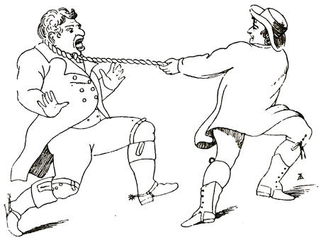 [54] There is a story told of a Lord Mayor in times long past, who went a-hunting in Epping Forest. Some one riding past him saluted him with, “My Lord! the Hare comes this way.” His lordship bravely drew his trusty sword, and, flourishing it, exclaimed, “Let him come! let him come! I thank my God, I fear him not.”