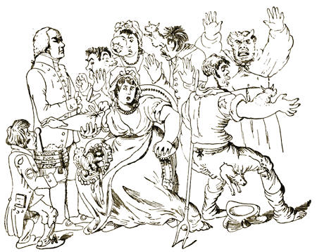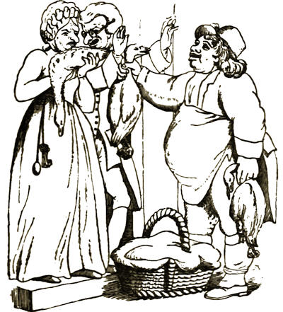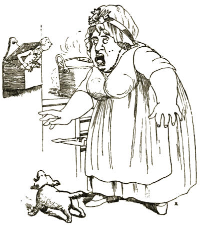 [21] Pitt says, as he looks from the Salt-box, “How do you do, cookey?” She exclaims, “Curse the fellow, how he has frightened me. I think in my heart he is getting in everywhere! Who the deuce would have thought of finding him in the Salt-box!!!”