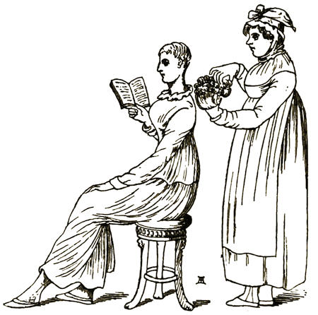 | Ladies’ dress—French costume—Madame Recamier—The classical style—“Progress of the toilet”—False hair—Hair-dresser’s advertisement—The Royal Family and dress—Curiosities of costume | 263 |