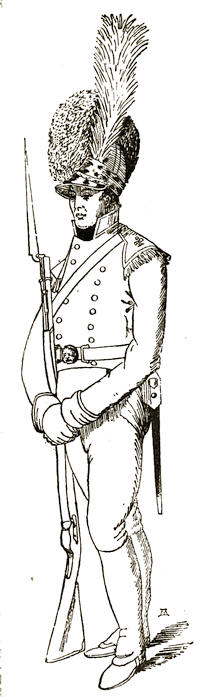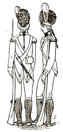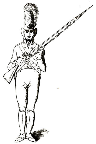 [7] The barrels and locks of the muskets of that date were bright and burnished. Browning the gun-barrels for the army was not introduced till 1808.