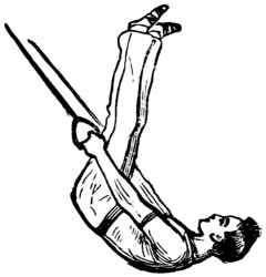 ‘You might get near it by hanging him up in two different positions. Hang him first by his head, and by means of a plumb-line draw a perpendicular from the point of suspension. Then hang him by the shoulder or side, and draw another perpendicular, which, this time, will fall across him. Where these two lines cross each other will be the centre of gravity; and on that point you might balance him, if you were strong enough. I dare say you have seen it done in the streets or at a circus—a man balanced at the end of a long pole.’