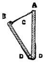 (3) The Triangle Puzzle.—Take six pieces of stick about three inches long, and with them form four equilateral triangles, each triangle to have one stick for the side. This is done by placing three sticks in a triangle on the table, and placing a stick at each corner and letting these three sticks come together at the other ends.
